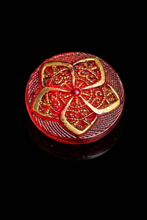 Vintage Transparent Glass Button with Internal Gold Foil Star Design